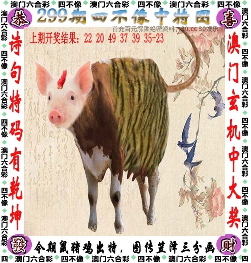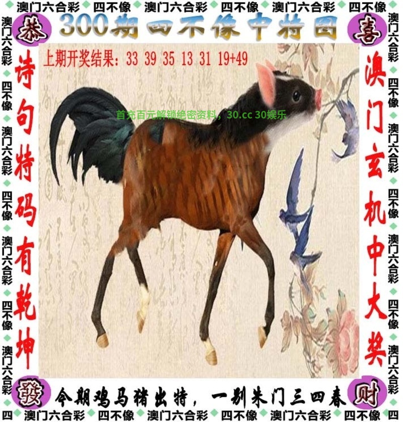 300期:今期鸡马猪出特,一别朱门三四春开:虎40准 |